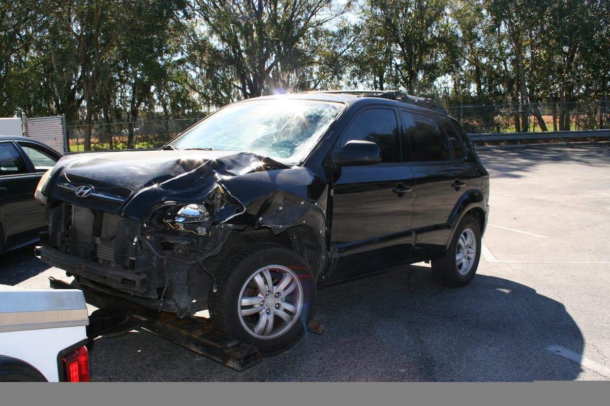 On Friday, the Lakeland Police Department received a call about a suspicious vehicle in a wooded area south of a mobile home park in Lakeland. Plant City Police officers met with Lakeland officers who led them to a black 2005-07 Hyundai Tuscon with heavy left front-end damage consistent with evidence gathered at the crash scene.