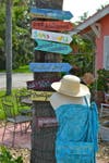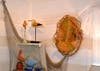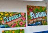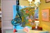 Florida postcards made by Carol Zaires, lamps and chandeliers crafted by Judy Neland and unique sculptures created from plastic bags and tape by Gary Wise co-mingle to form a collage of interesting, eye-catching merchandise.Β