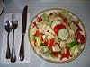 Fresh, crisp and colorful greens topped with real roasted chicken, very good - Grilled Stuffed Portobello Salad with Goat Cheese: a blend of iceberg and romaine lettuce topped with a goat cheese stuffed Portobello $8.00