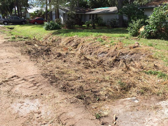 Call the city or county when necessary. After a month of the pine tree debris sitting in my ditches where it had been put by the county and the tree service, it was finally removed. Sort of. The logs and bigger branches were gone, but my ditches were left full of smaller debris (above). I wrote an email to the county saying, in part, “Nice start. You are cordially invited to come back and finish the job.” The county came out and agreed they needed to come back to clean up the rest. Had I not made this call, I would have spent hours in my ditches bagging rotting debris myself – and that wasn’t going to happen.