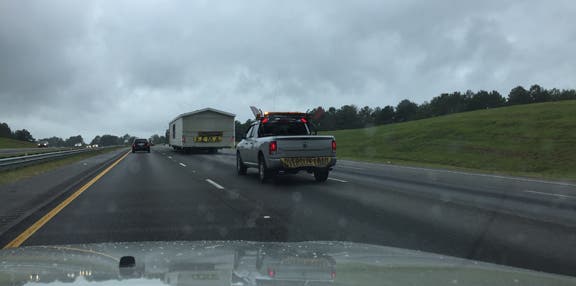 But let’s start in late August 2017, and I’ll keep this short. I was on vacation in Wisconsin visiting family. Irma wasn’t a “thing.” She became a thing and I found myself in a Piggly Wiggly shopping for post-storm food and water, feeling the desperate need to explain to the cashier “I don’t normally eat like this.” What was supposed to be a leisurely return-to-Florida drive down the east coast of the U.S. with my brother Kerry turned into a relief effort on his part. Friends were texting me photos of my street: “Is this your tree across the road?” Kerry and I saw Army convoys and FEMA trailers (below) heading south on I-75. We lucked into a hotel room in Ellenton in the middle of the night because I didn’t want to go home in the dark. I prepared myself by mentally and emotionally letting go of my belongings, family heirlooms and all.