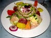 Nicely seasoned and presented, flavorful and filling - Seafood Platter: Fresh mahi-mahi, ocean scallop skewer, fresh gulf shrimp skewer, char grilled and served with roasted potatoes and vegetables. Served with choice of soup or junior Greek Salad $19.95 Good size portion, seafood sweet and tasty.