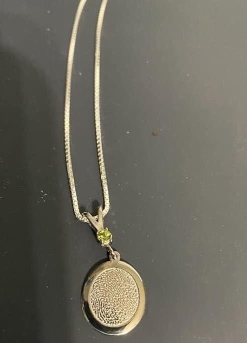 It wasn’t just any necklace that can be bought in a store, she said. It had a deeper meaning for her, as it incorporates the thumbprint and birthstone of her son, Noah, into the design. It also features his name on the back.