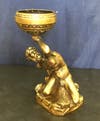 The copper kettle that has been polished to a high shine. Notice how it looks bright and new again just from polishing. The sculpture of the man is actually a pot metal lamp that we re-plated in brass and applied an antique finish. Your household items can also be transformed into really beautiful pieces that you will love for a long time and want to pass on!