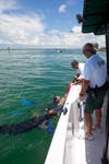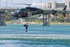 The drills were practiced in Sarasota Bay off of on City Island. The divers jumped from an agency helicopter in teams of two in order to retrieve a dummy from the water and return it safely onto a nearby boat. All the while lucky patrons at were treated to a great showing of skill and precision.