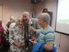Mickey and Magda sat in the front row and held hands for the duration of the ceremony. They were met with a chorus of “Mazel tov!” from their fellow Kobernick residents, staff members and friends who came out to join them for the occasion. Following the broadcast of the ceremony, a reception was held with refreshments for the guests.