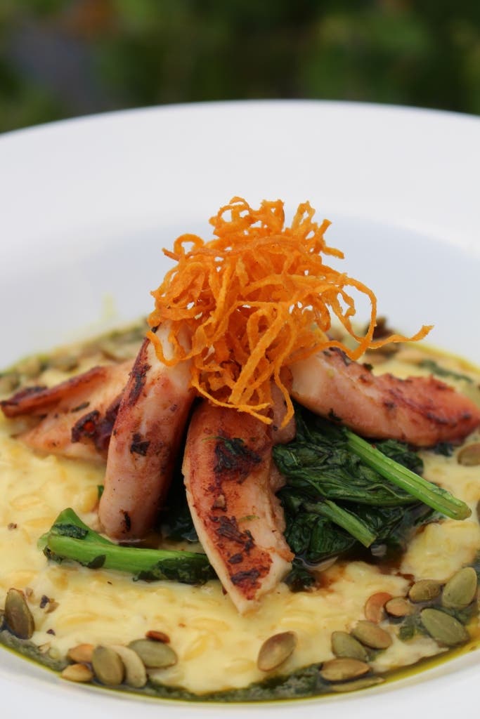 Portuguese Grilled Octopus Risotto, Roasted pumpkin pesto, broccoli rabe.