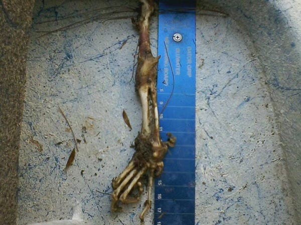 Photo: A picture of a non-human primate arm uncovered in the woods during a Sasquatch Hunters expedition. Facebook