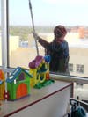 After rappelling down the roof, the webbed hero began his grime-fighting duties by cleaning the windows outside a kid-filled playroom on the eighth floor of the hospital. Afterward, he scaled over to the windows of several patients who were too sick to join the others in the playroom.