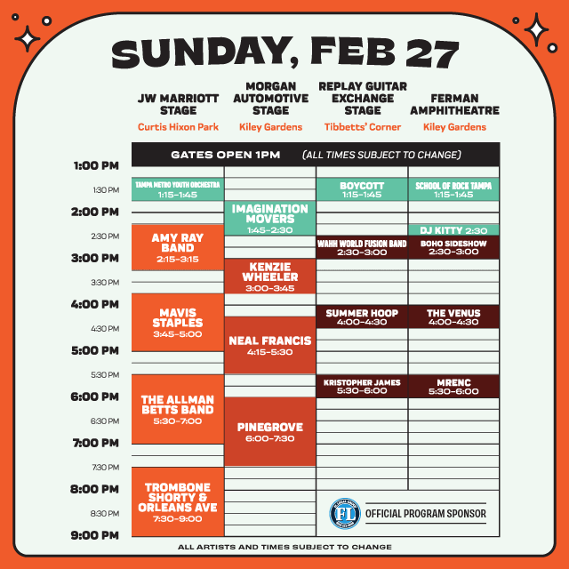 “We are beyond excited to have these great artists coming in to help support our underfunded music programs and help us provide opportunities for thousands of children,” said David Cox, the executive director of the Gasparilla Music Foundation. which produces the festival. “And as a bonus, we get to throw one of Tampa’s biggest parties with them,”