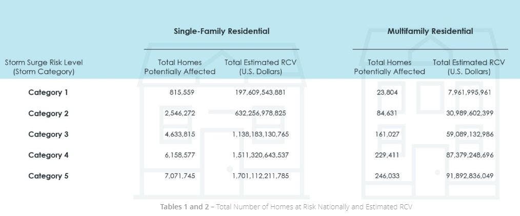 ACROSS FLORIDA — More than 7.3 million homes in the United States are at risk of being destroyed by hurricane storm surge, according to a report released last month.