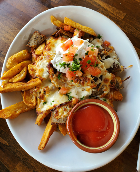 The menu is bedecked with all of the Greek staples from dolmades, saganaki, hummus, and tzatziki to gyro, and charbroiled eggplant. Several new items were flagged on the menu including an assortment of seafood sliders and a quinoa power bowl; Sam expressed that he takes great pride in continual innovation with the menu and its delivery. We opted for one of the new items for our first course: loaded gyro fries topped with lean meat, tzatziki, feta, and melted mozzarella. Imagine if fries and a nacho platter married all of the perfect fillings of a gyro wrap and you’d end up with this match made in heaven.
