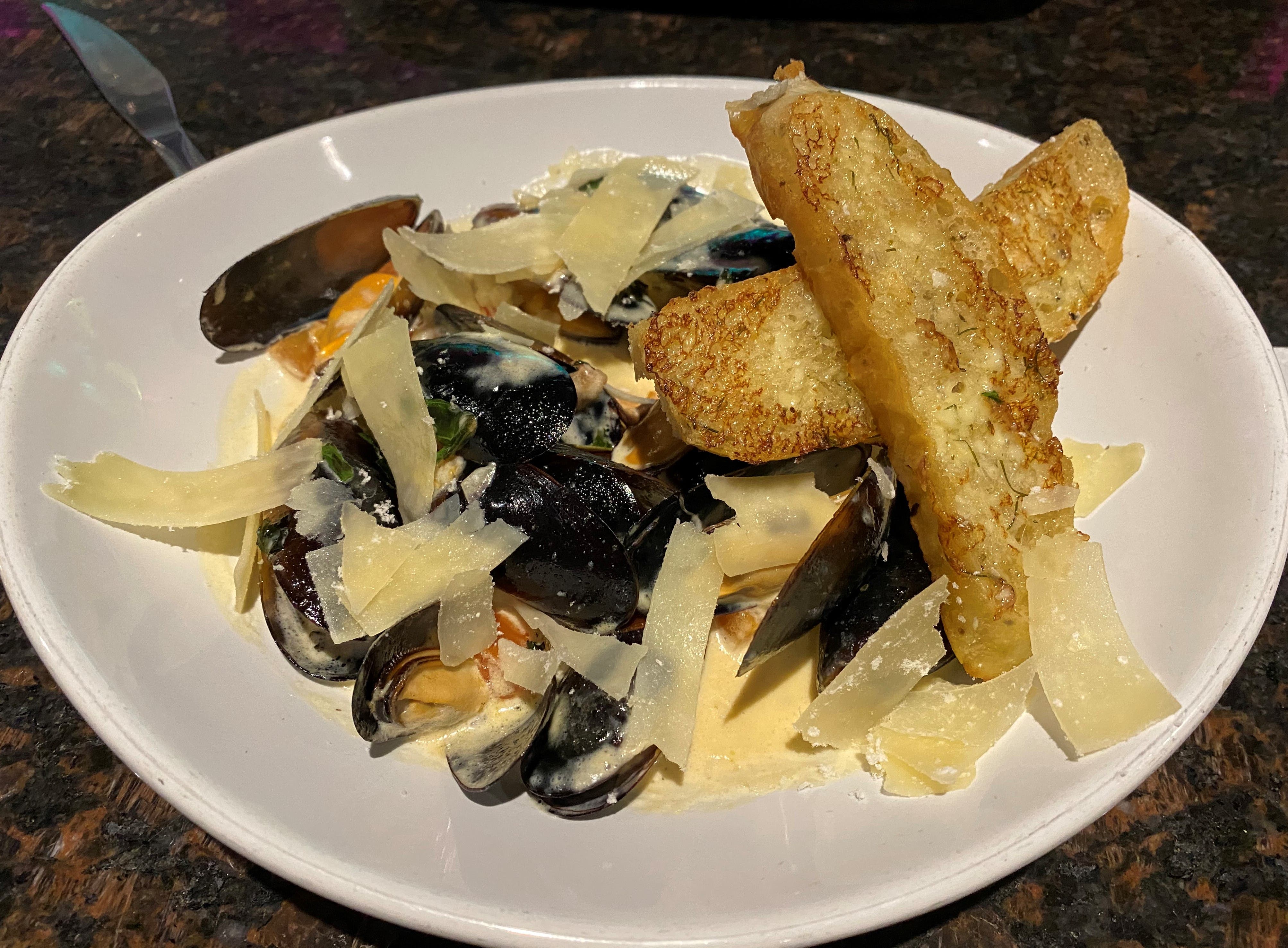 Sautéed mussels with garlic, onions, basil, fresh tomato, Ouzo and Santorini wine. Served with garlic bread