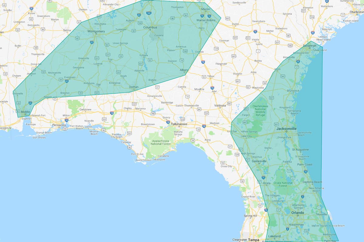 - Greater Brunswick area (including Camden, Clinch and Wayne Counties)