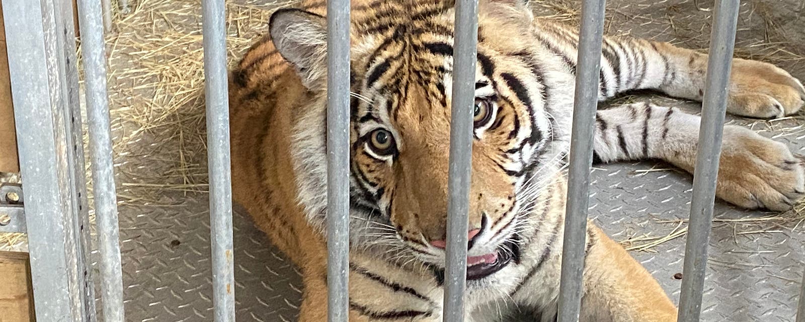 The Humane Society of the United States used this photo of a tiger trapped in a too-small page to garner national support fo the Big Cat Public Safety Act.