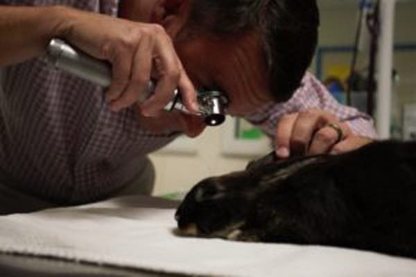 “She’s stable and she’s eating well,” Dr. Peter Helmer said after examining Fuzzy Pants on Thursday. The rabbit is receiving pain medication, he added.