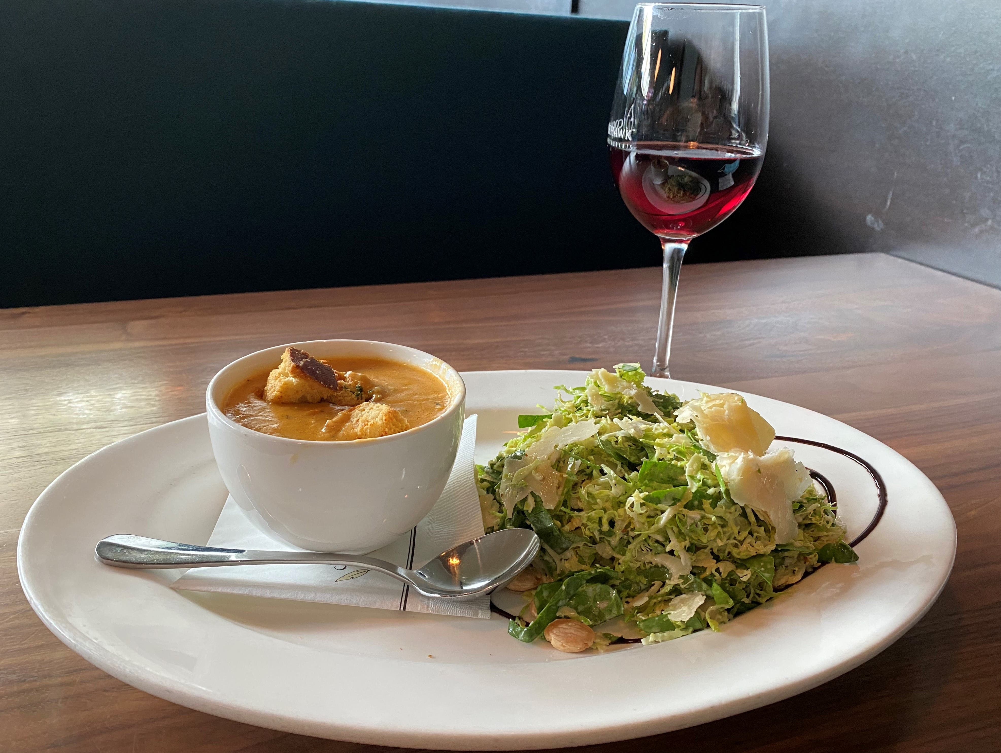 Crab & lobster bisque with shaved brussels sprout salad.