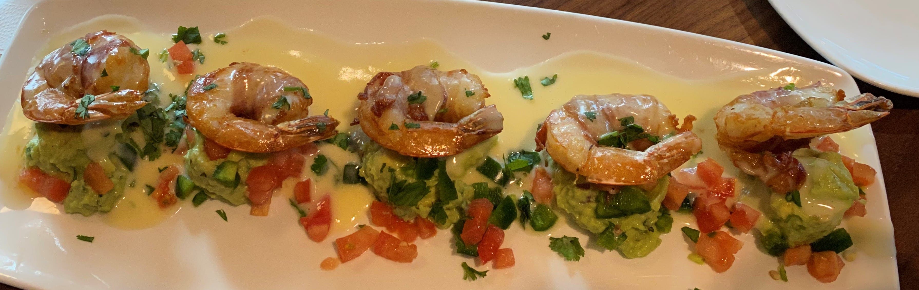 Bacon-Wrapped Shrimp, Tequila Lime Butter Sauce, Fresh Guacamole