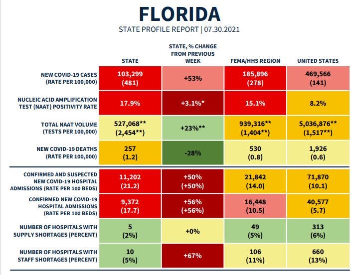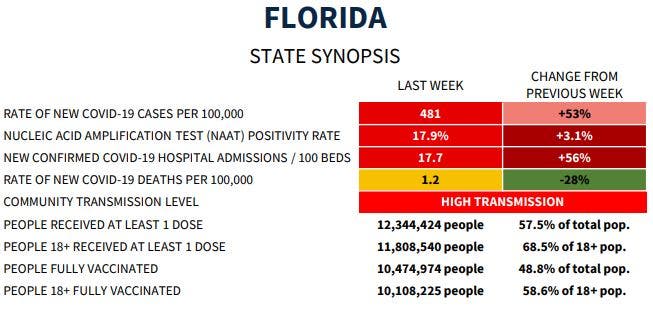 "Gov. DeSantis needs to take his head out of the sand, issue an emergency order and take this threat seriously," she said. "If we don't increase testing capacity, vaccine rates and public outreach, the surge will get worse."