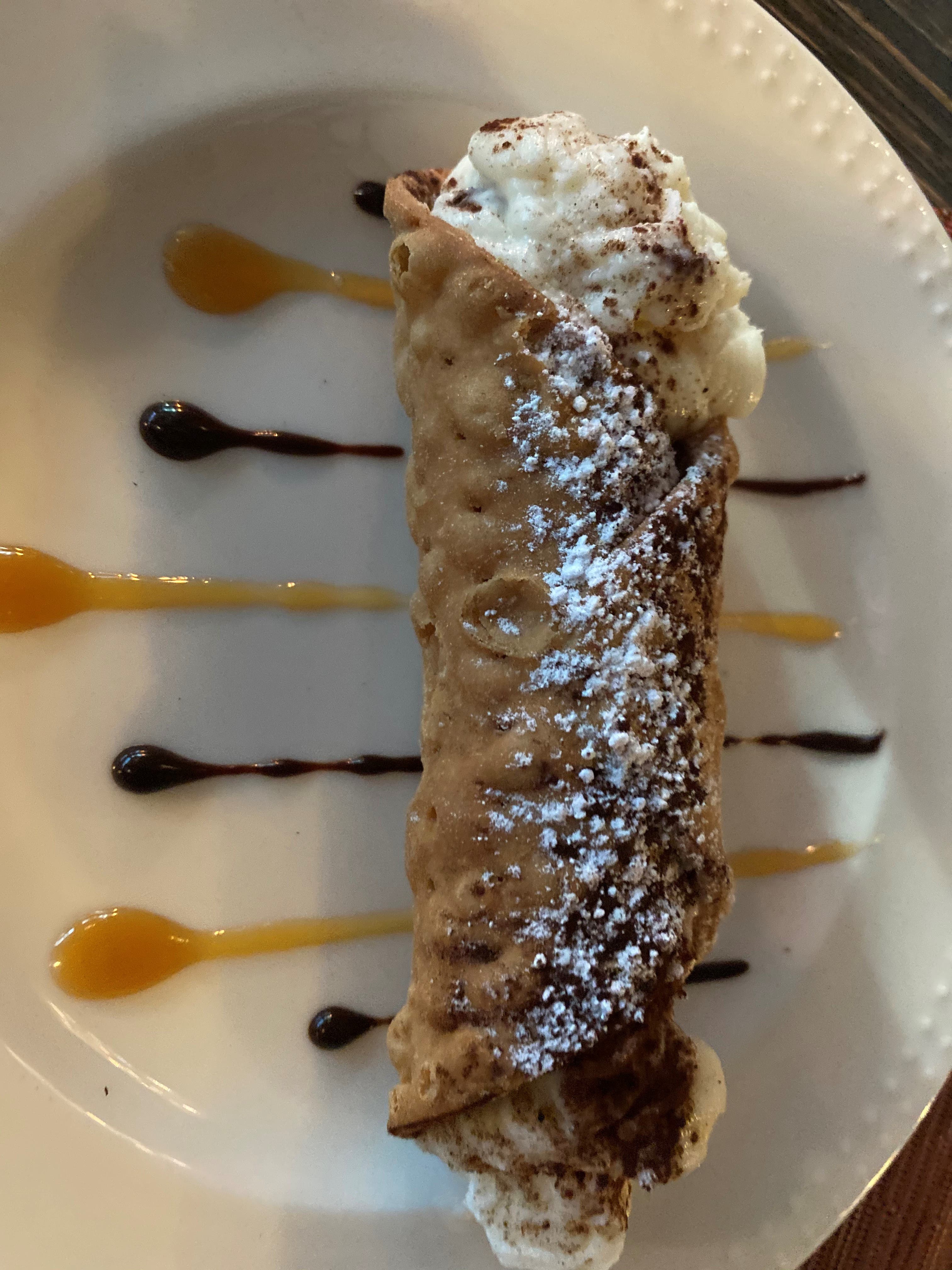 A cannoli is one of my all-time favorite desserts. Though I would sooner not have one if it is desecrated with chocolate chips. Here the Cannoli is treated with respect.