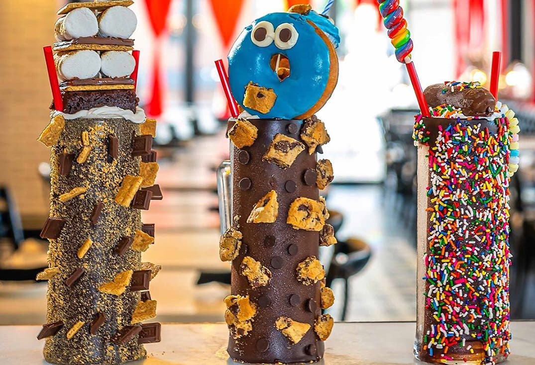 A Spring Insane Milkshake, made with vanilla ice cream and sprinkles and topped with whipped cream, marshmallows, a candy necklace and other goodies ($19), is available all month.