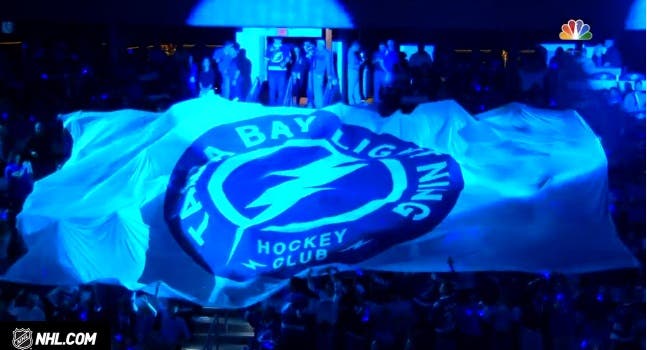 The Tampa Bay Lightning and Pittsburgh Penguins meet up for the first game in the Eastern Conference Finals on Friday. Screenshot from the NHL.com recap video of the second round series winning game against New York.