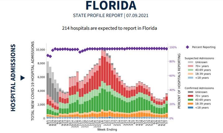 - Statewide, 58 percent of Florida residents have now been vaccinated and the positivity rate for the coronavirus from July 2-8 is 7.8 percent.