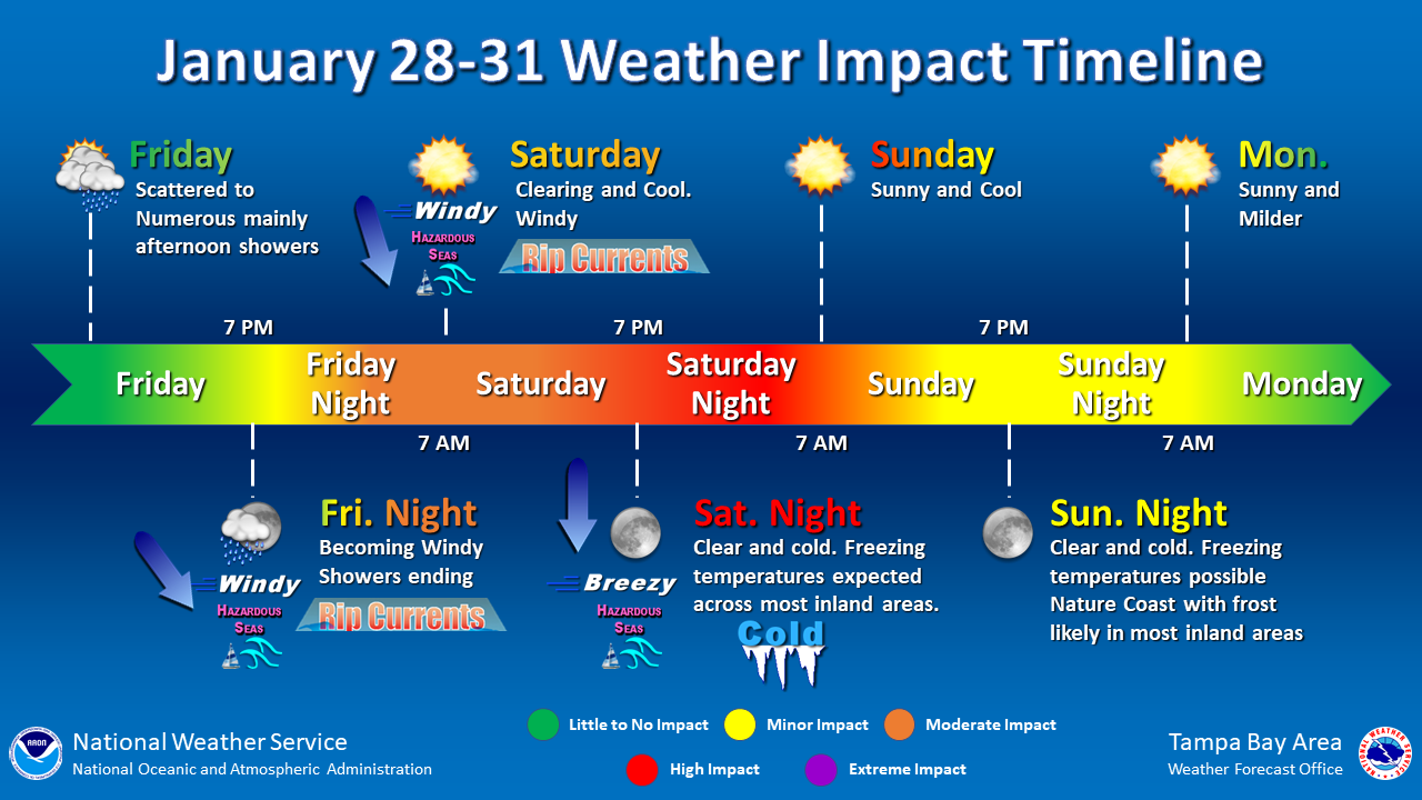 However, daytime temperatures will are expected to be mild, in the 40s and 50s, so events such as the annual Gasparilla Parade of Pirates shouldn't be impacted.