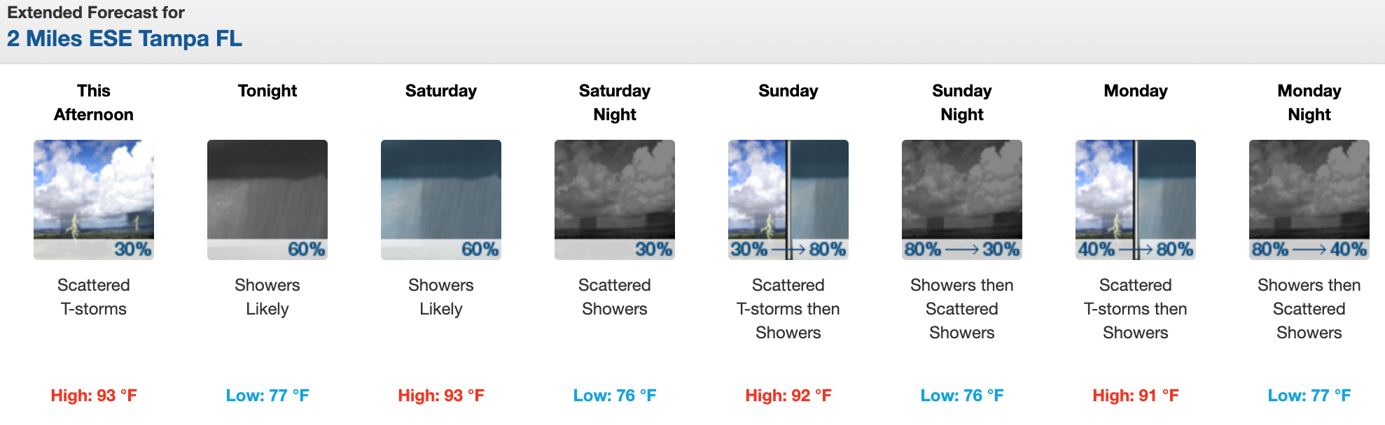 Here is the forecast for the Tampa area, from the National Weather Service: