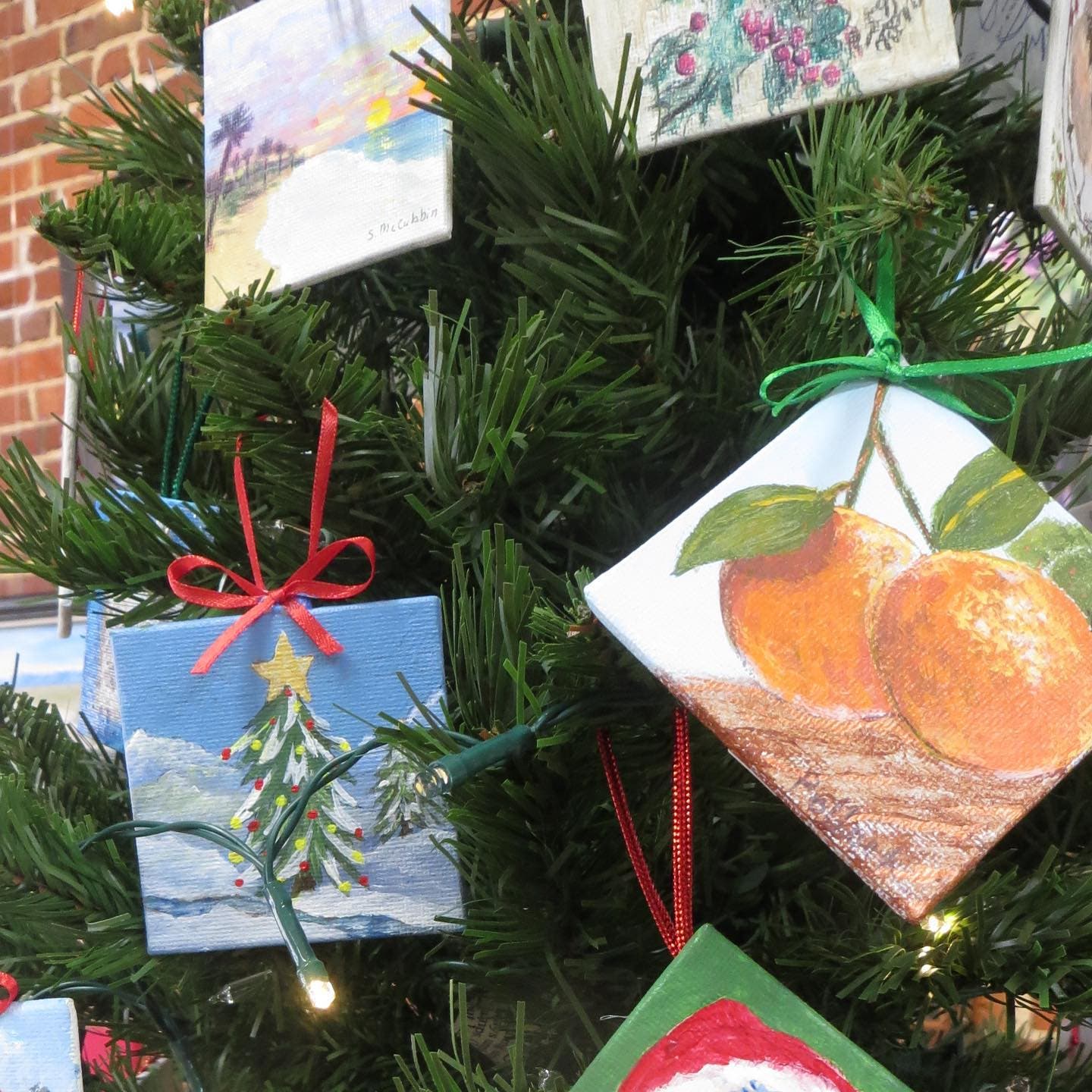 Check out these tiny painted canvases created by artists of the Tarpon Art Guild, 161 E. Tarpon Ave., Tarpon Springs. You can hang them on a tree or use them to adorn a gift.