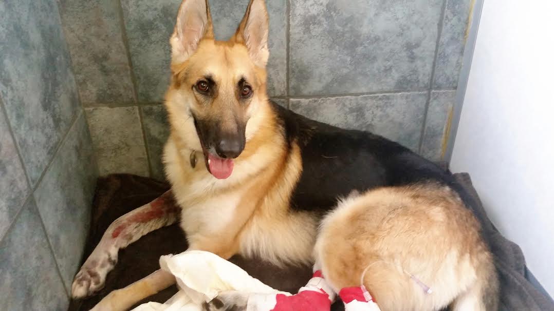 The German shepherd, who suffered three bites from a rattlesnake while defending a 7-year-old girl, is on the mend.