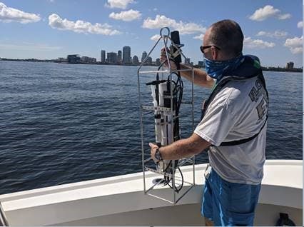 A researcher at the Florida Wildlife and Conservation Center Research Institute tests water in Tampa Bay for red tide.