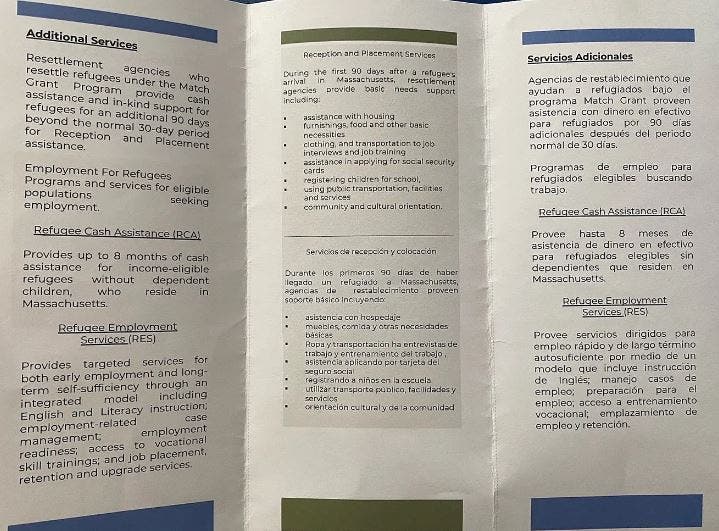 Lawyers for Civil Rights said none of the promises in the brochure are true. The benefits described in the brochure are resettlement benefits available to refugees who have been referred by the United Nations High Commissioner for Refugees and are authorized to live in the United States. They aren't available to immigrants who are in the process of seeking asylum.