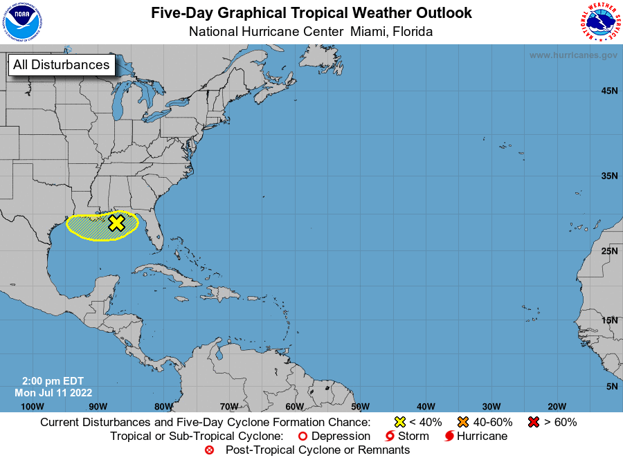 FLORIDA — A broad trough of low pressure over the northern Gulf of Mexico has a chance of developing into a tropical cyclone later this week if it remains offshore, according to a statement issued by the National Hurricane Center in Miami at 2 p.m. Monday.
