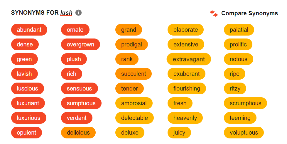 As I mentioned before, a visit to this property is about exploring. So, I am going to be lazy and, rather than wax poetic, I will share synonyms for lush and some photos of the hotel that evoke the word.