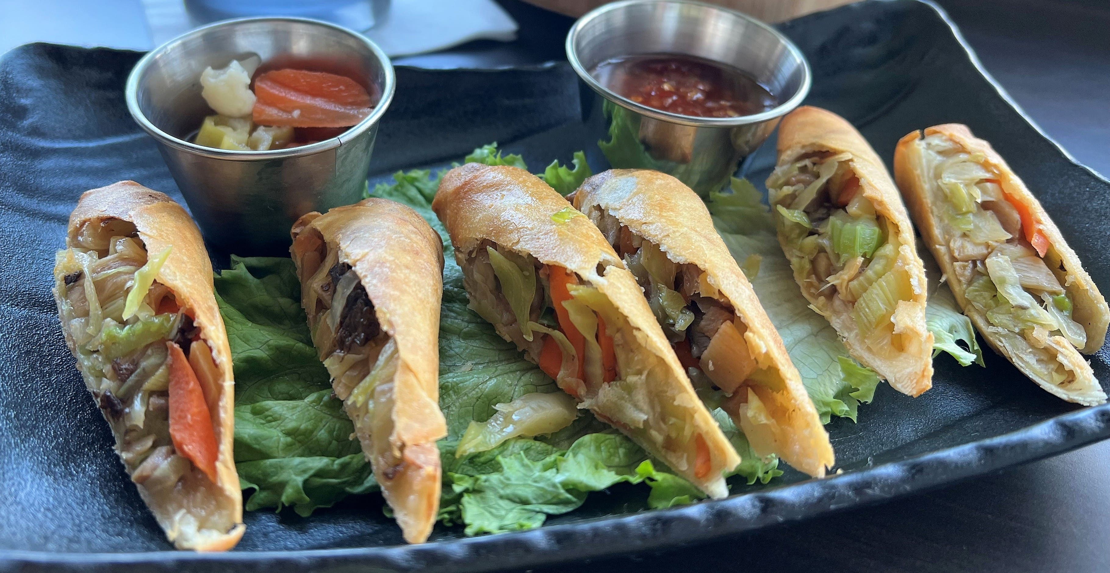 House made Vegetable Spring Rolls (three): This is not your food court roll. These house-made spring rolls are made with vegetables including mushrooms, carrots and cabbage. The chunky fresh vegetables and tangy sauce make this a standout starter.
