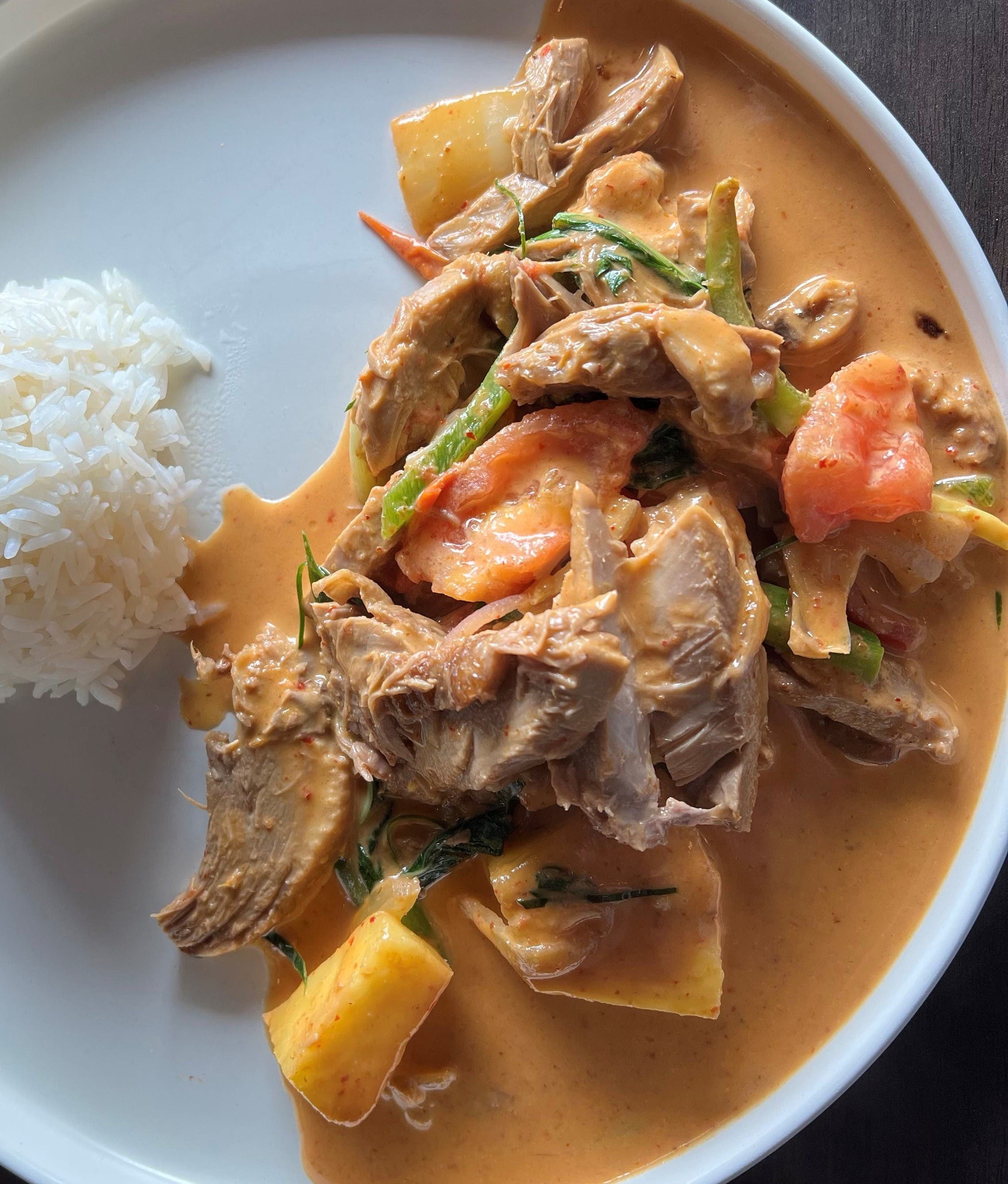 Red Duck Curry: Roasted duck coconut curry and side of jasmine rice. I read several online posts about how impressed guests were with the duck curry, so again I ventured out of my comfort zone to great success. The tender duck was ample in the dish and the acidity of the tomatoes and sweetness of the pineapple all played nice in the rich broth.