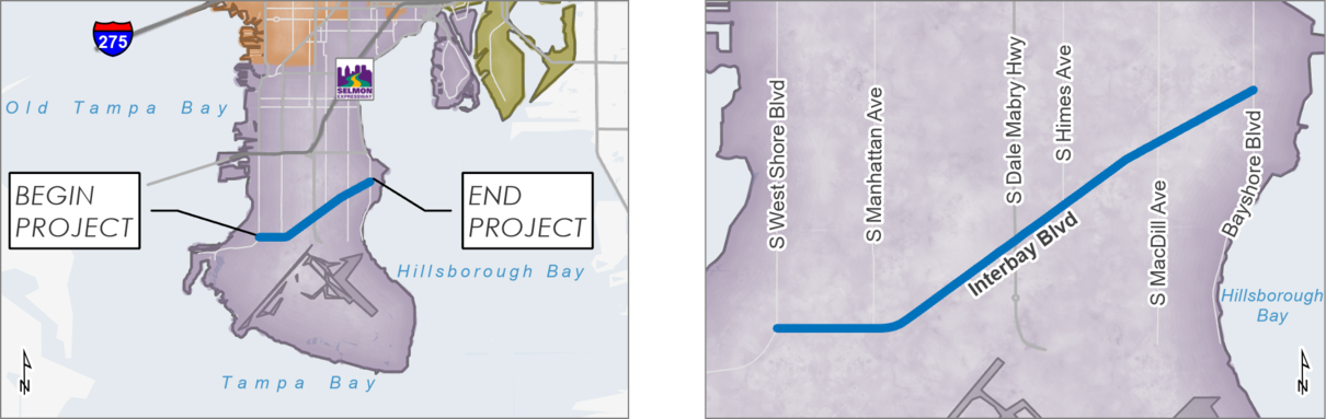 - Roundabouts and turn lane widening and signal modifications at Interbay and West Shore, Lois Avenue and MacDill Avenue.