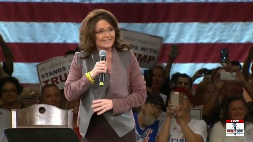 Palin was the first to take the stage at the rally, which had a slow start due to weather-related delays in Trump’s arrival. The outspoken former vice presidential candidate lashed out at the protests that have highlighted several of Trump’s recent events and slammed the media in the process.