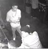 Surveillance photos courtesy of the Tampa Police Department. The man in blue is a person of interest in the case, the department says, while the man in the plaid shirt is a possible witness to the stabbing. The two men in the black-and-white photos have also been identified as persons of interest in the case.