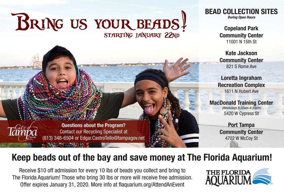 “Environmental sustainability is a core tenant of my administration's focus,” said the mayor. “And while we all love a good parade, the beads thrown during the parade have no place harming our delicate ecosystem. Together, we will transform Tampa’s tomorrow by keeping our marine wildlife safe and our environment clean by keeping beads out of the water this and every event season moving forward.”