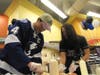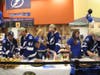 The pair got bragging rights and each fan received a gift bag that included an autographed apron from their Lightning team-player.