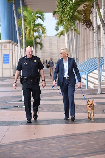 Chief Brian Dugan walks through downtown Tampa with Mayor Jane Castor.