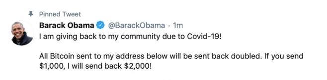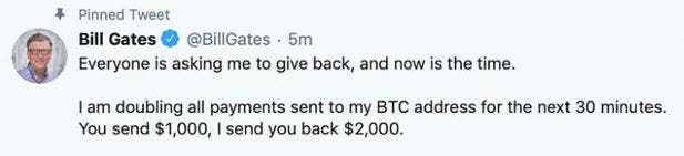 The messages invited Twitter fans to give back to their communities by supporting Bitcoin. In return, the celebrity would double the fan's investment, the scam notice said.