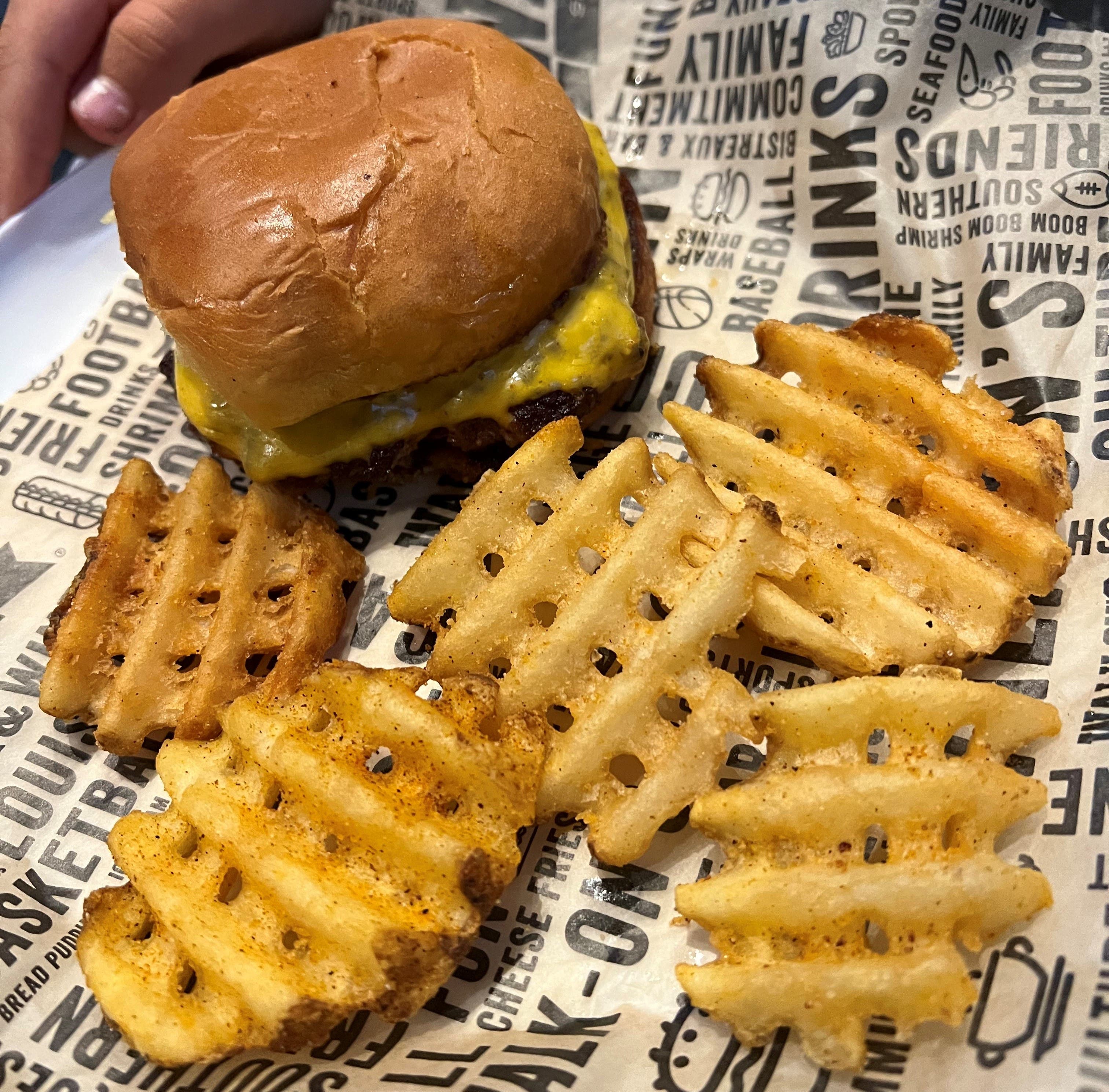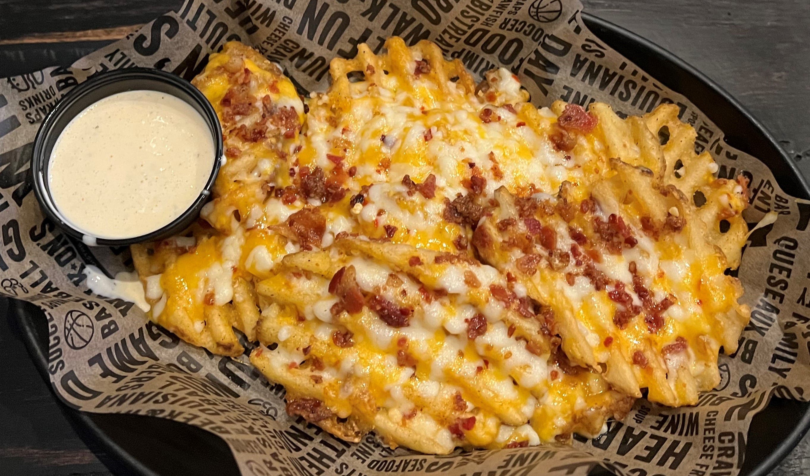 Waffle cheese fries include jack, cheddar, bacon and banana peppers. Currently, the Walk-On's website has a coupon for a free cheese fry so log on before you visit.