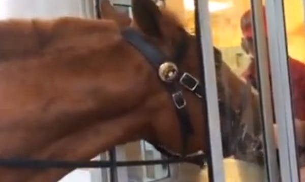 Watch: Police Horse Creates Scene in Krispy Kreme Drive-Through