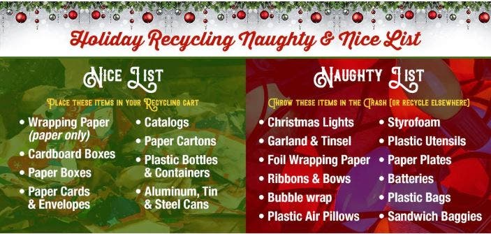 To stay on Santa’s nice list this year, make sure to recycle the following: