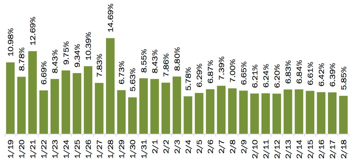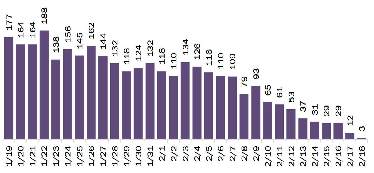 In addition, the number of deaths has been steadily declining throughout January and February.