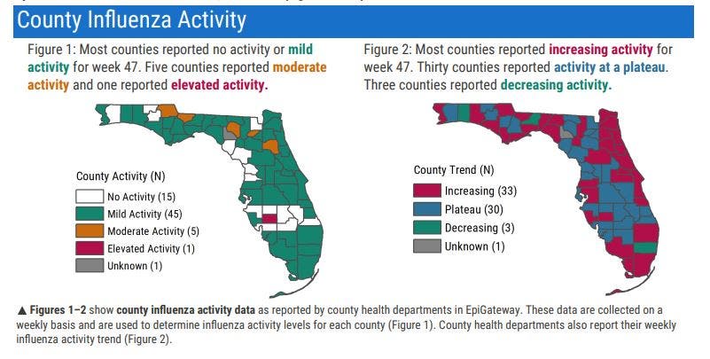 "Influenza seasons vary in timing, severity and duration," said Cassandra Pasley, chief of staff for the Florida Department of Health. "It is not possible to predict what the 2021–22 influenza season will be like in Florida."