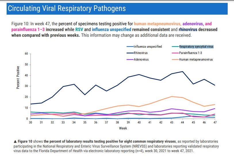Currently, rhinovirus is the predominant respiratory illness in Florida.